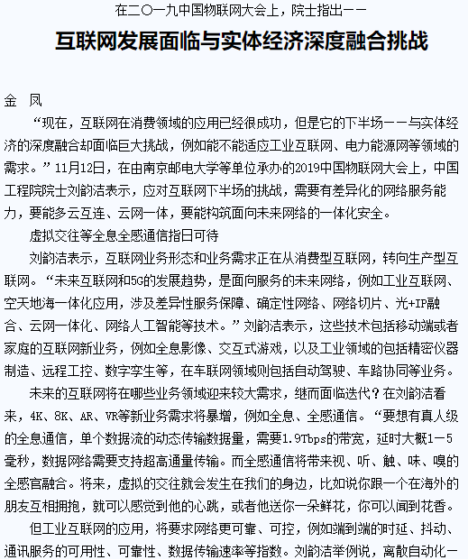 【科技日報】互聯網發展面臨與實體經濟深度融合挑戰