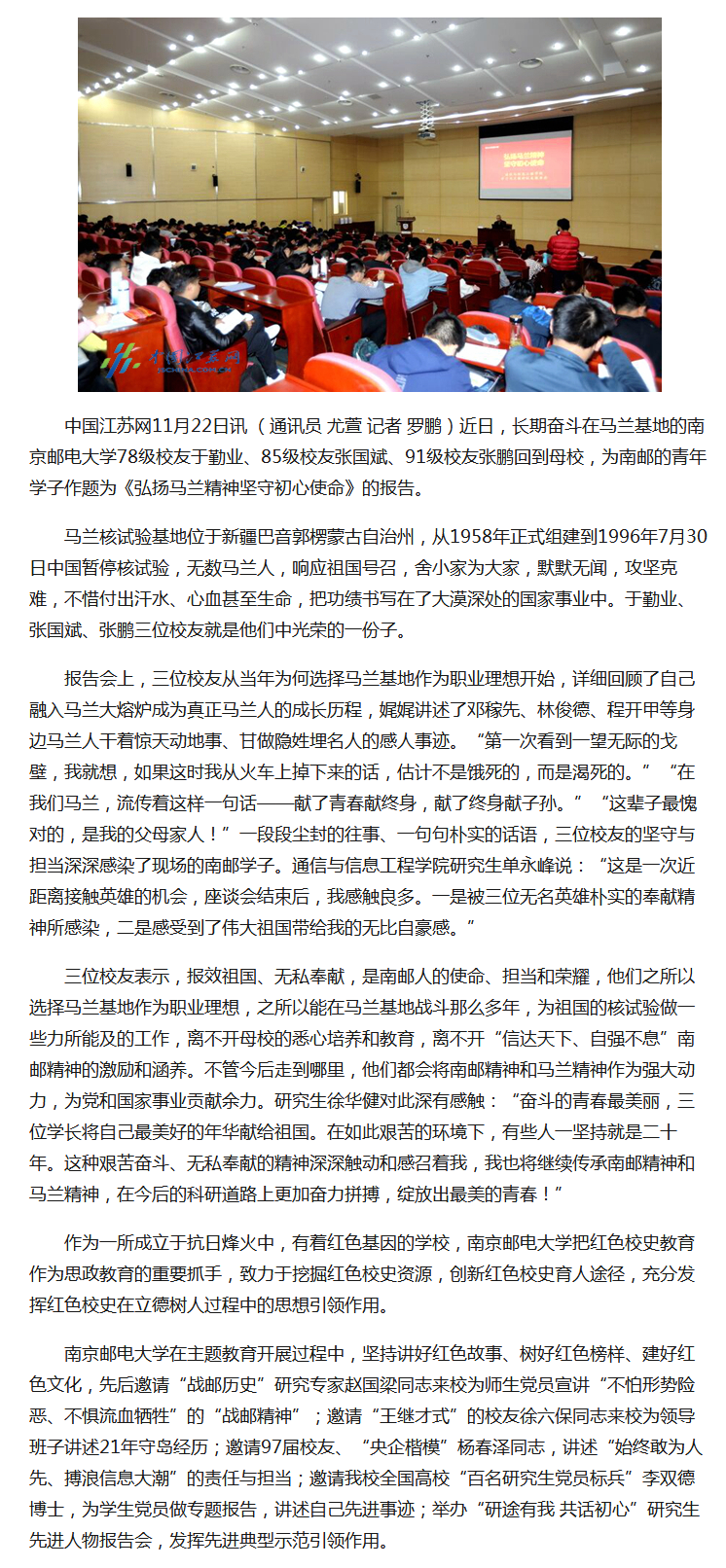 【中國江蘇網】學身邊榜樣 馬蘭基地三校友齊聚母校為南郵學子宣講