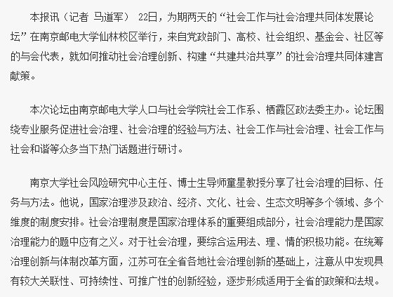 【南京日報(bào)】社會工作與社會治理共同體發(fā)展論壇舉行