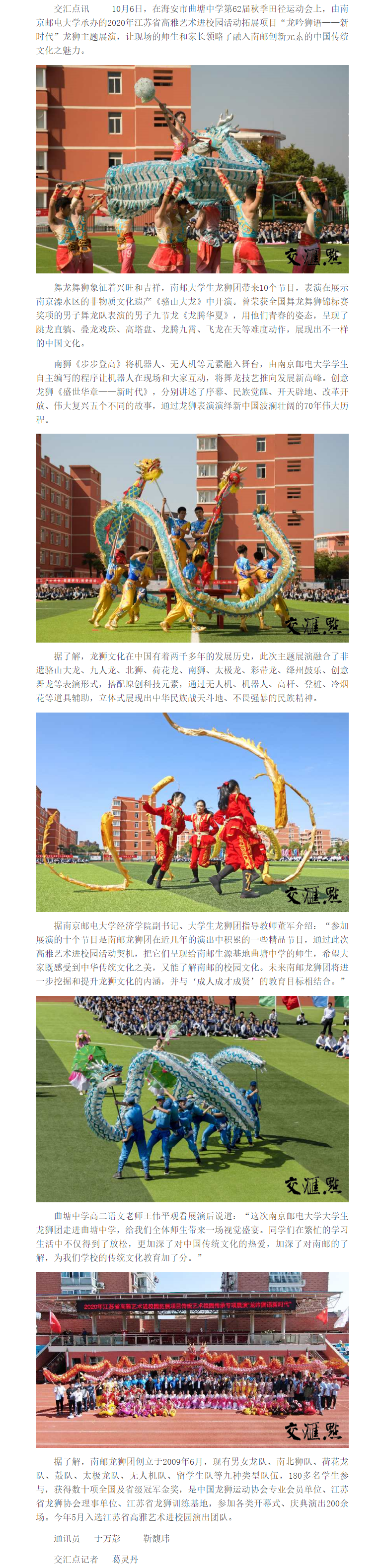 【新華日報客戶端】“龍騰獅躍”!大學生送傳統文化進中學校園
