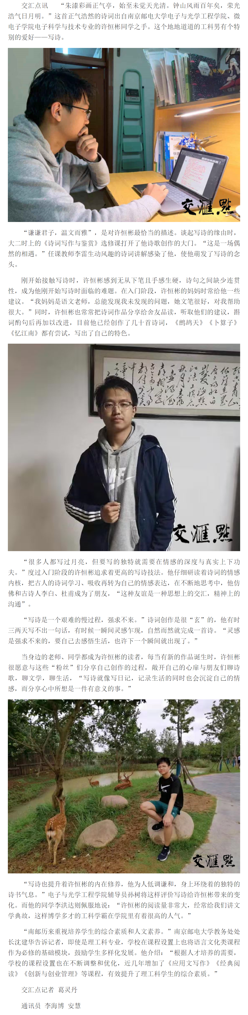 【新華日報客戶端】工科生也能寫詩!南郵有位“雙棲少年”