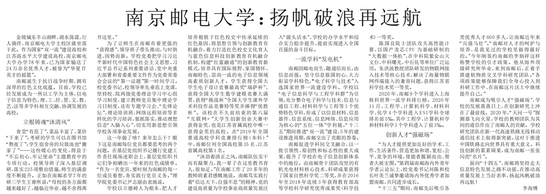 【新華日報】南京郵電大學:揚帆破浪再遠航