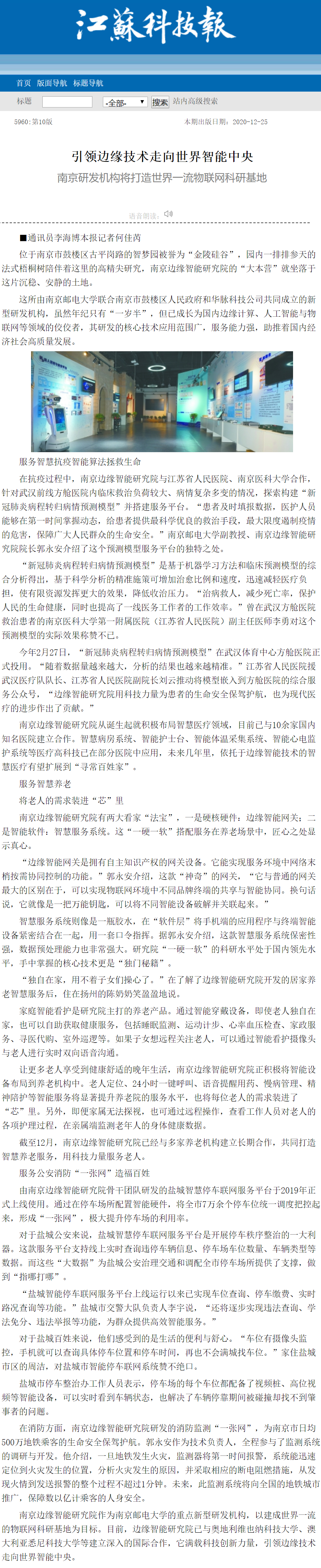 【江蘇科技報】引領(lǐng)邊緣技術(shù)走向世界智能中央