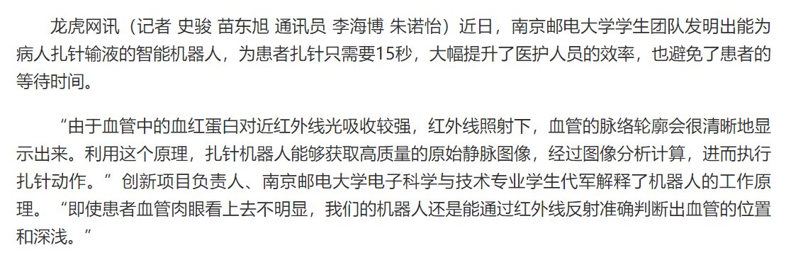 【龍虎網】機器人給病人扎針輸液?南郵學子打造醫療新幫手