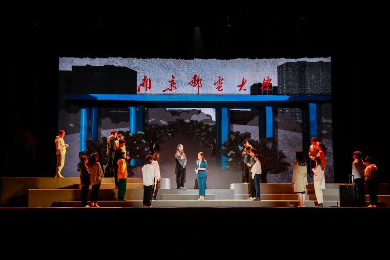隨著校歌《信達天下》響起,南郵人在奔跑。“跟著共產黨走,就是死了也光榮?!薄包h要我到哪里我就去哪里。”“有通信的地方,就有南郵人的身影。”虛實結合中,一句句樸實而又鏗鏘有力的話語一次又一次地震撼著師生的心靈。