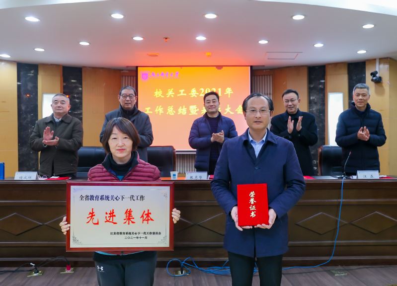 校關工委常務副主任朱永平作2021年關工委工作總結。一年來,校關工委在學校黨委領導和省教育系統關工委指導下,圍繞立德樹人根本任務,立足優質化建設、高質量發展、創新性工作、實效性服務,各項工作取得了顯著成績,多項工作受到上級表彰。校關工委副主任馬名騫宣讀了江蘇省教育系統關工委和我校關工委表彰決定。張志華副校長、朱永平常務副主任為受表彰的集體和個人頒發獎牌和榮譽證書。