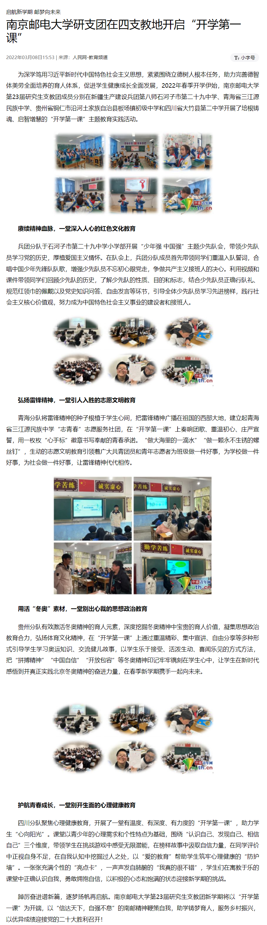 【人民網】啟航新學期 郵夢向未來 南京郵電大學研支團在四支教地開啟“開學第一課”