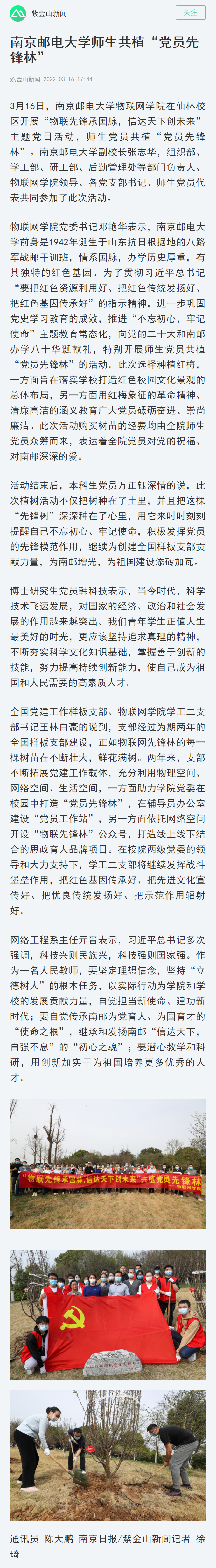 【南京日報客戶端】南京郵電大學(xué)師生共植“黨員先鋒林”