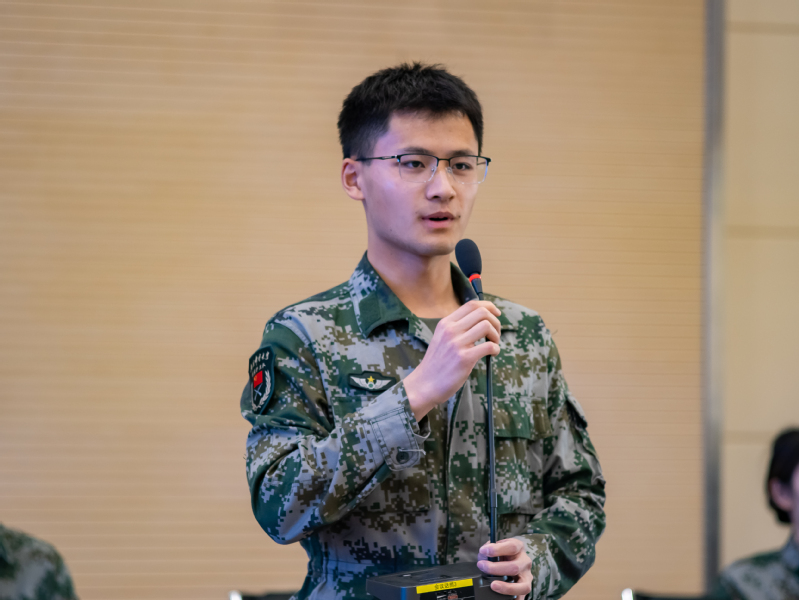 座談會上,隊員們回味著加入國護隊的初衷,感慨著在隊中成長的點滴,分享著出任務時的動人故事。他們中,有毅然加入國護隊、為隊伍添磚加瓦的退役大學生士兵,有歷經層層選拔、受過嚴格訓練的老隊員,也有用自己赤忱熱情、勤奮又井井有條的新隊員。對國旗的守護、對軍人的崇敬、對軍裝的向往將來自五湖四海的隊員們凝聚在一起,“沐朝露,伴夕陽”的升降旗儀式、“千錘萬擊”的隊列訓練培養了他們的集體榮譽感,“無懼風雨,并肩前行”的信念支撐著他們為南郵這個“家”撐起了一片天。每位隊員講話結束,在座師生們都致以真摯且熱烈的掌聲,隊歌《祖國不會忘記》的歌聲回蕩在會場,堅定亦激昂。