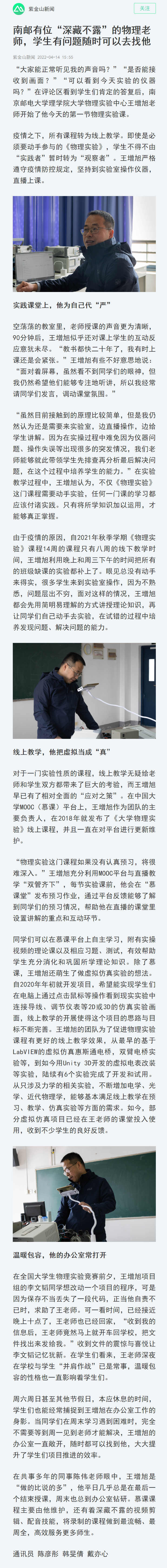 【南京日?qǐng)?bào)客戶端】南郵有位“深藏不露”的物理老師,學(xué)生有問(wèn)題隨時(shí)可以去找他
