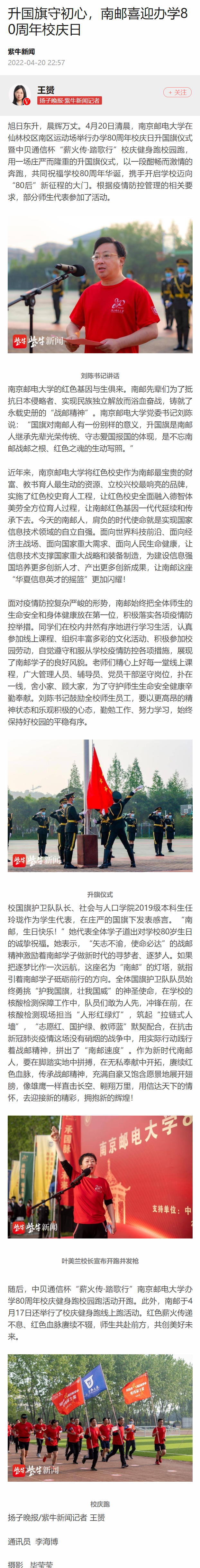 【揚子晚報客戶端】升國旗守初心,南郵喜迎辦學80周年校慶日