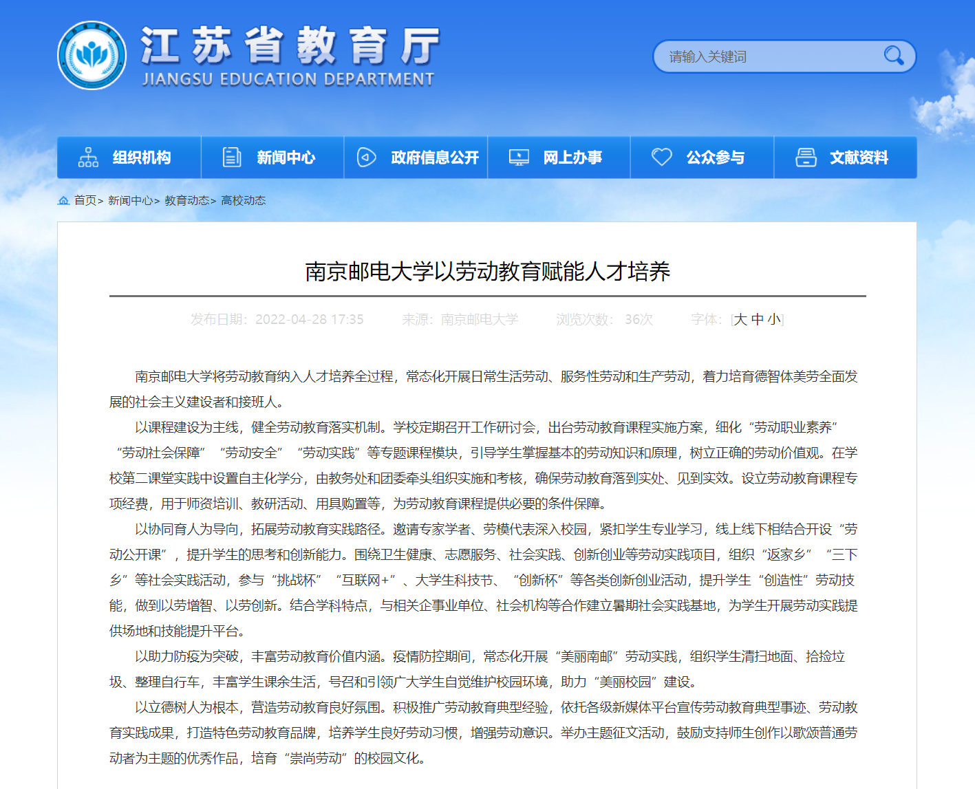 【省教育廳官網】南京郵電大學以勞動教育賦能人才培養