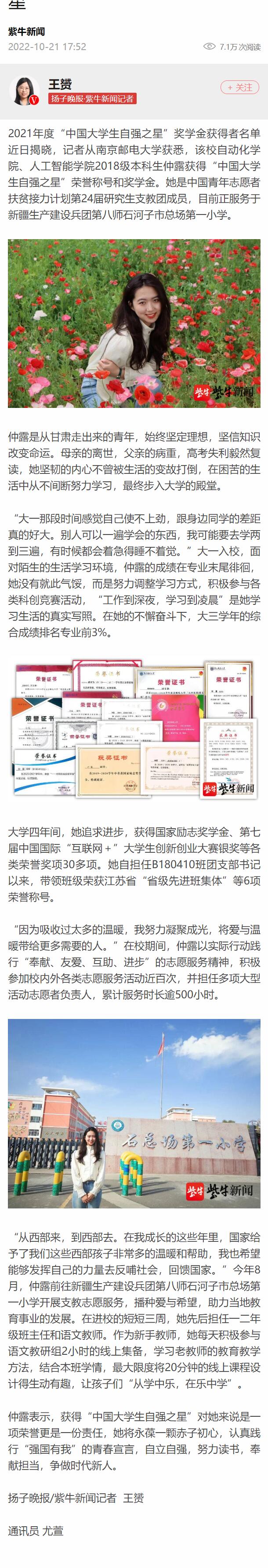 【揚子晚報客戶端】從西部來,到西部去!南郵學(xué)子榮獲“中國大學(xué)生自強之星”
