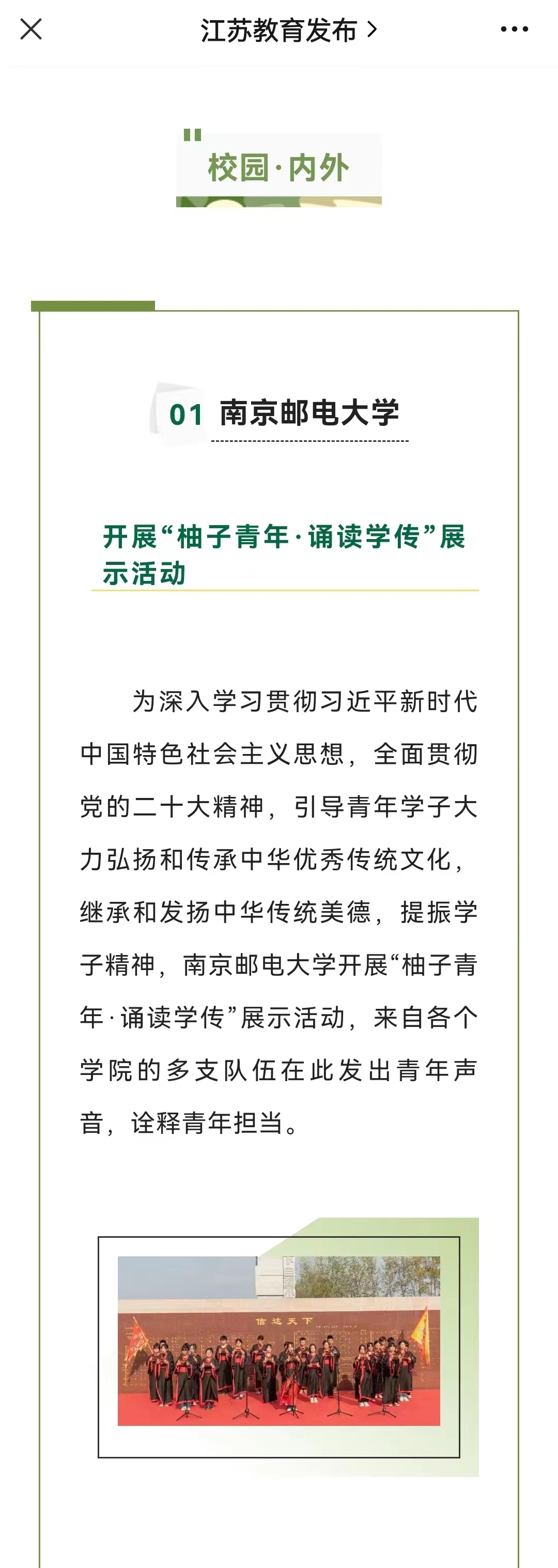 【省教育廳官微】南京郵電大學開展“柚子青年·誦讀學傳”展示活動