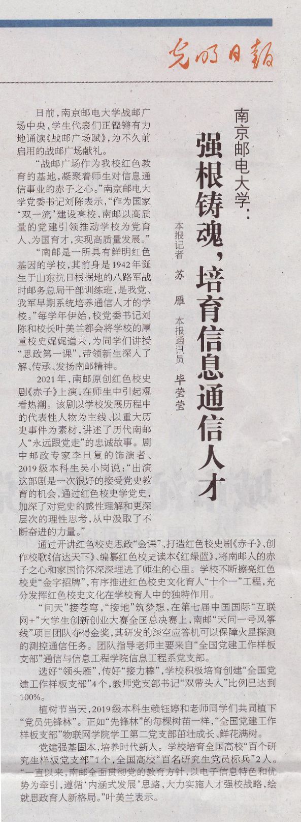 【光明日報】南京郵電大學: 強根鑄魂,培育信息通信人才