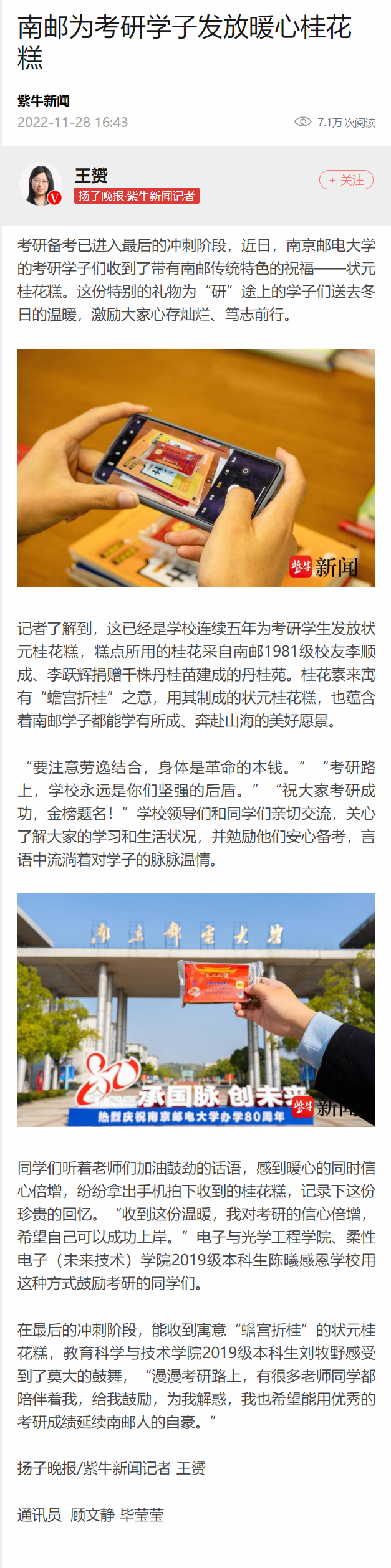【揚子晚報客戶端】南郵為考研學子發放暖心桂花糕