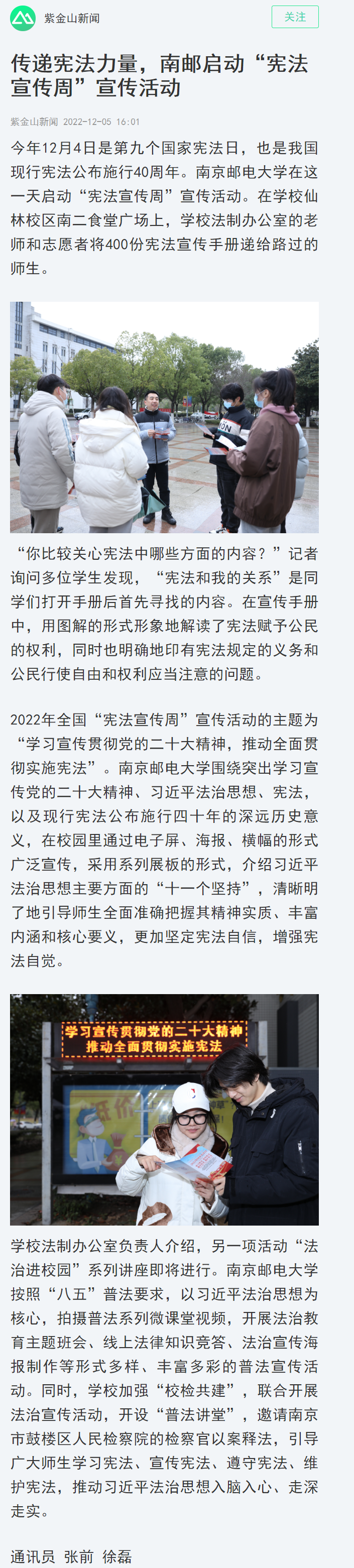 【南京日報客戶端】傳遞憲法力量,南郵啟動“憲法宣傳周”宣傳活動