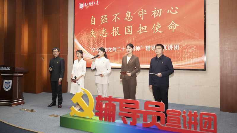 為深入學習宣傳貫徹黨的二十大精神,切實把我校大學生的思想統一到黨的二十大精神上來,12月9日下午,“學習貫徹黨的二十大精神”輔導員宣講團、優秀學子宣講團成立大會在仙林校區中天科技報告廳舉行。校黨委常委、副校長荊晅出席大會,相關職能部門負責人、二級學院黨委副書記、思政課導師代表、輔導員宣講團指導教師、全體宣講團成員、2022年新入職輔導員、校第六屆大學生年度人物參加會議。