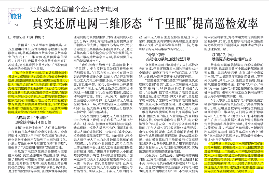 【新華日報】真實還原電網三維形態 “千里眼”提高巡檢效率