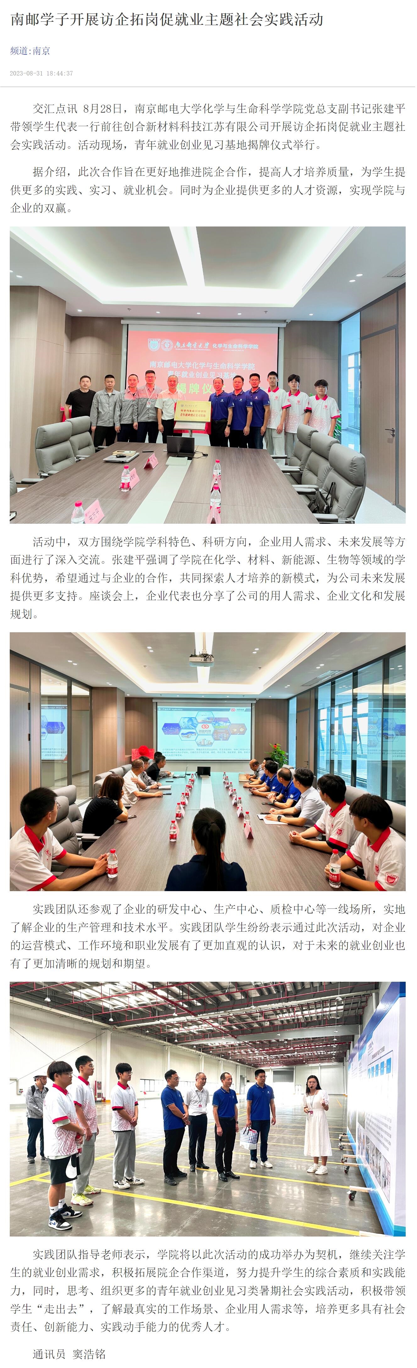【新華日報客戶端】南郵學子開展訪企拓崗促就業主題社會實踐活動