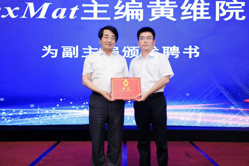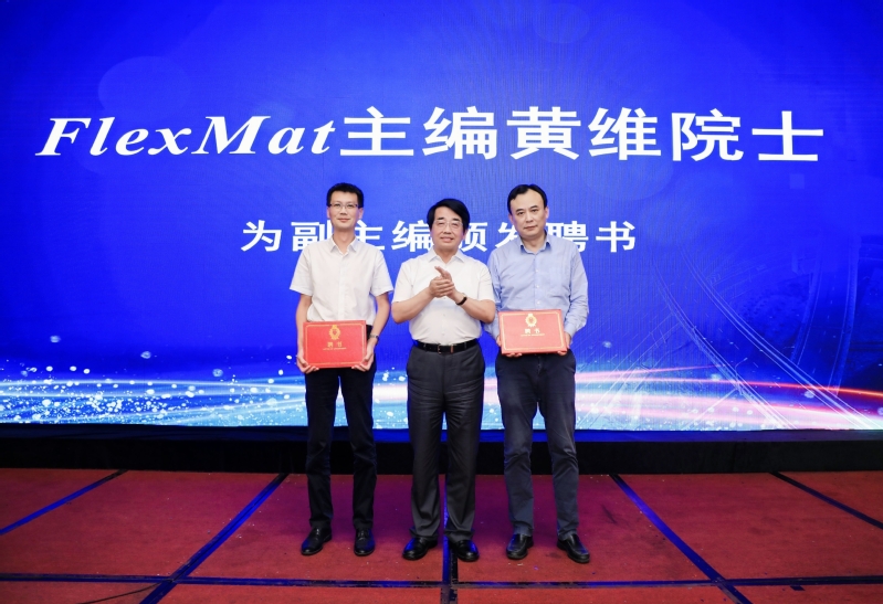 啟動(dòng)儀式結(jié)束后,葉美蘭校長(zhǎng)為FlexMat主編黃維院士頒發(fā)聘書(shū)。FlexMat主編、黃維院士為期刊共同主編、執(zhí)行主編、副主編頒發(fā)聘書(shū)。