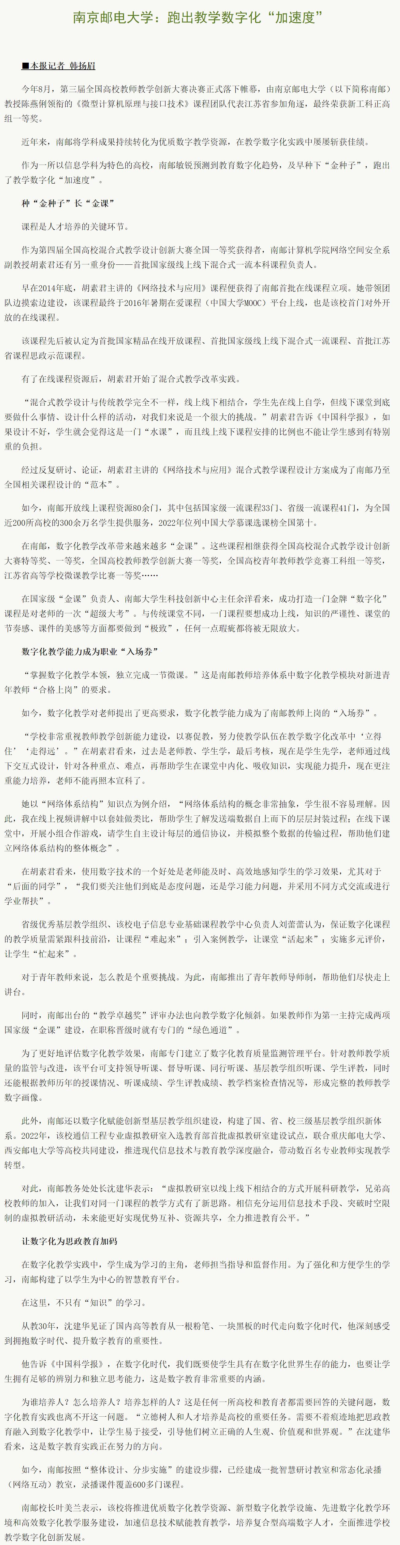 【中國科學報】南京郵電大學:跑出教學數字化“加速度”