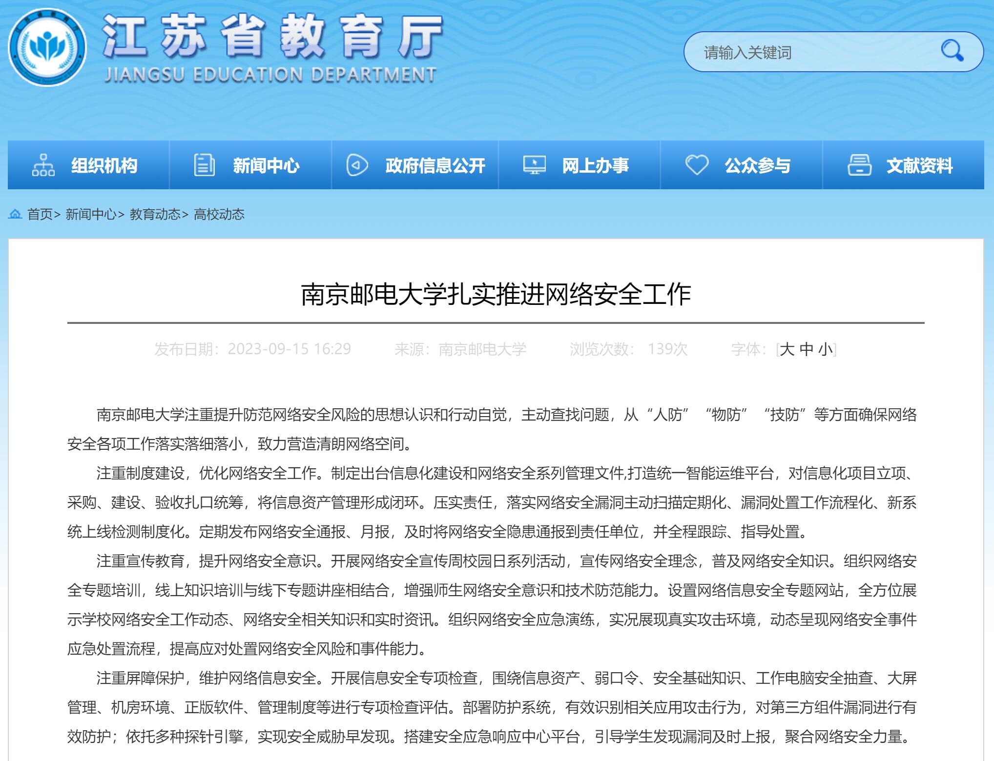 【省教育廳官網(wǎng)】南京郵電大學(xué)扎實推進(jìn)網(wǎng)絡(luò)安全工作