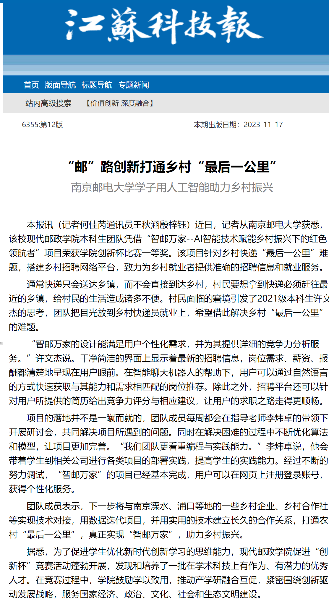 【江蘇科技報】“郵”路創新打通鄉村“最后一公里”