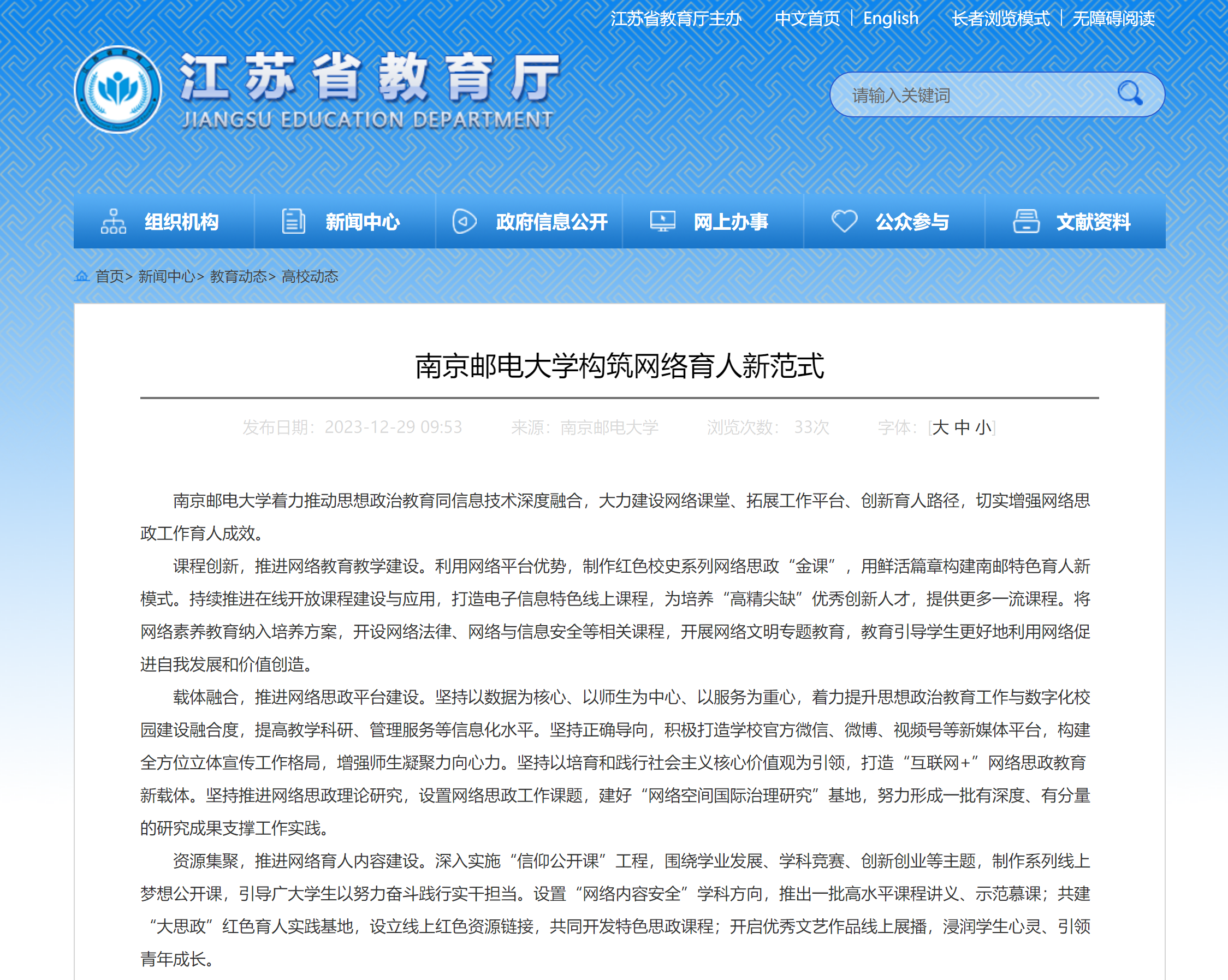 【省教育廳官網】南京郵電大學構筑網絡育人新范式