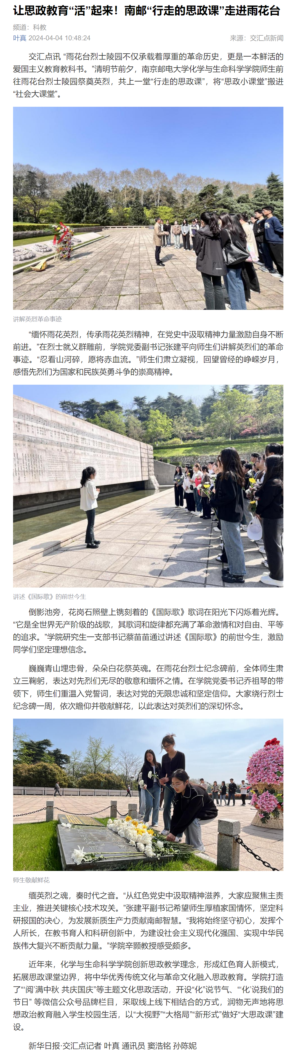 【新華日報客戶端】讓思政教育“活”起來!南郵“行走的思政課”走進雨花臺