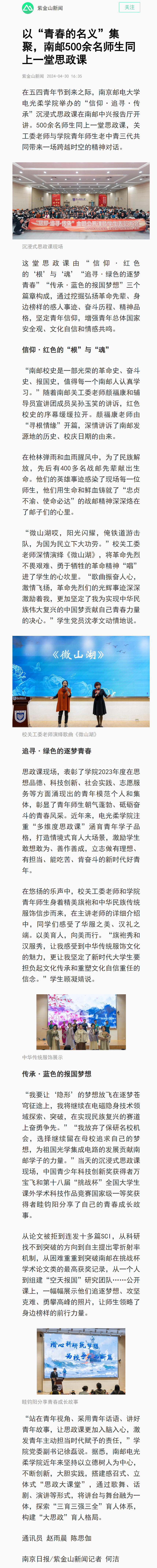 【南京日報客戶端】以“青春的名義”集聚,南郵500余名師生同上一堂思政課