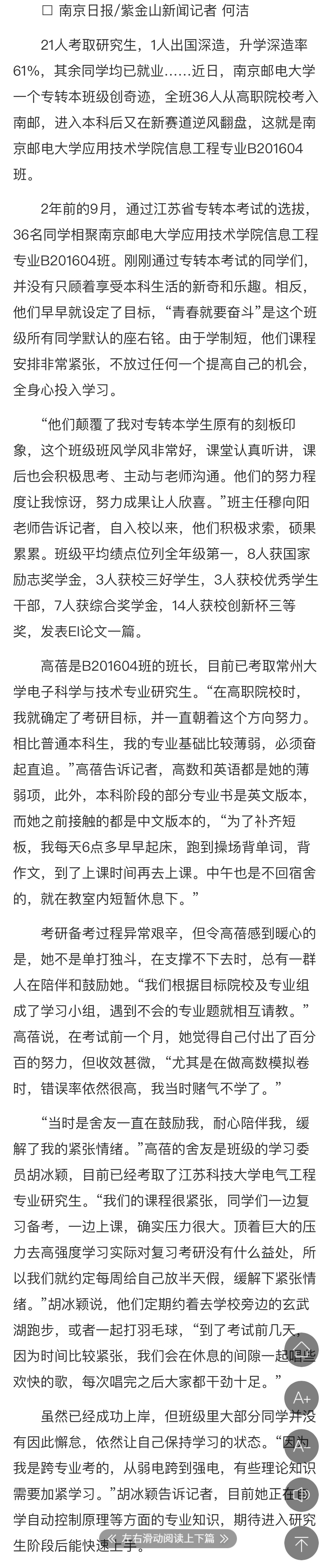 【南京日報】南郵“專轉(zhuǎn)本”班“不一般的牛”