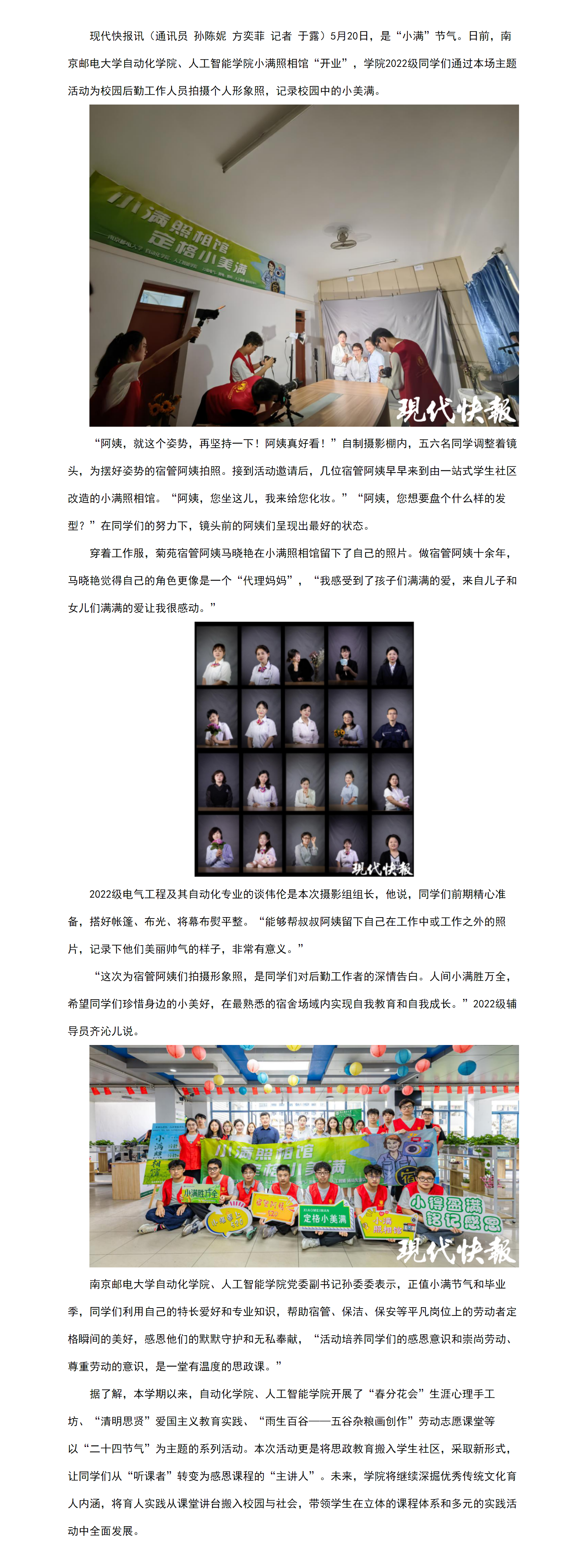 【現代快報全媒體】小滿照相館“開業”,南郵學子為宿管阿姨定格美好瞬間