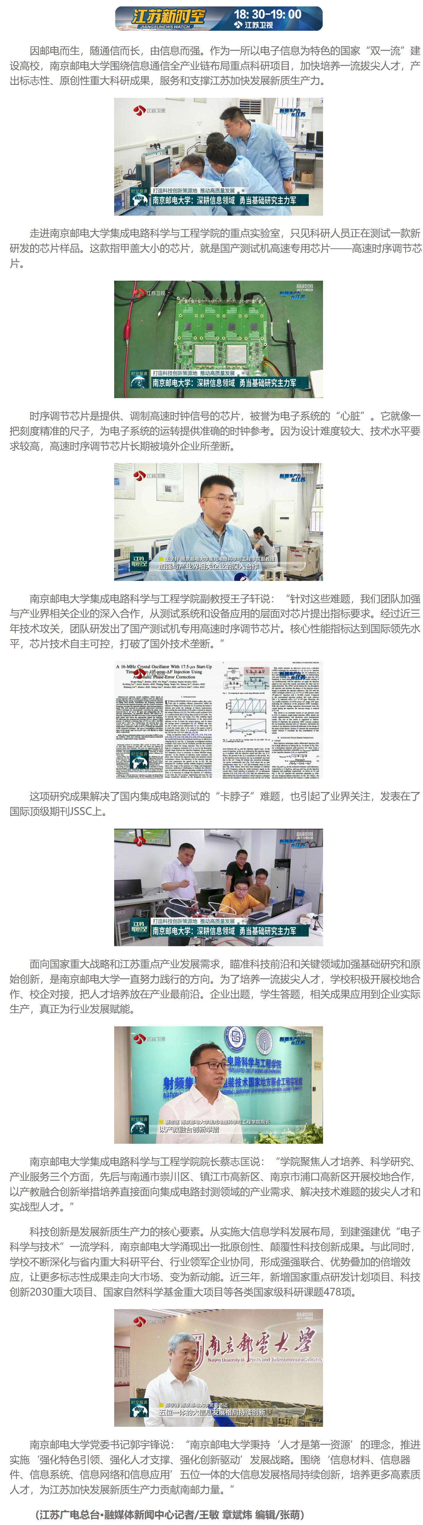 【江蘇衛視】南京郵電大學:深耕信息領域 勇當基礎研究主力軍