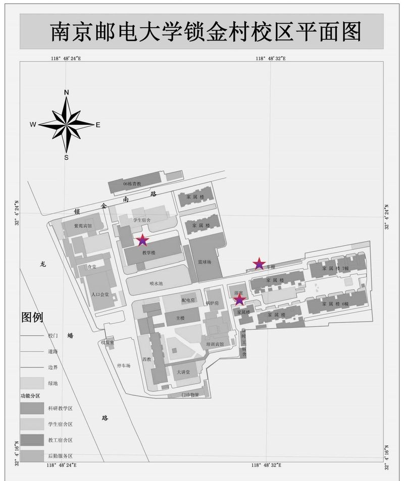 鎖金村校區:3處,從北至南分別教學樓北側、2棟家屬樓北側、浴室南側。