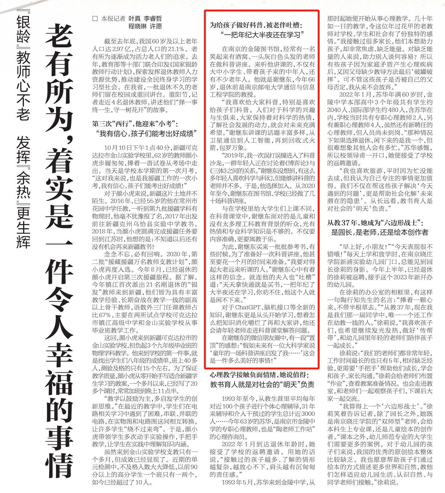 【新華日報】南郵“銀齡”教師心不老 發揮“余熱”更生輝
