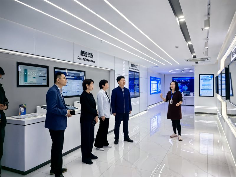 走訪期間,葉美蘭校長一行參觀了數睿數據展廳,了解企業發展歷程和融資情況,詳細聽取無代碼軟件平臺“數據域、管理域、分析域和運營域”的體系設計,“智慧城市”“智慧政務”“能源電力”等行業場景解決方案、創新技術及實施路徑的具體介紹。