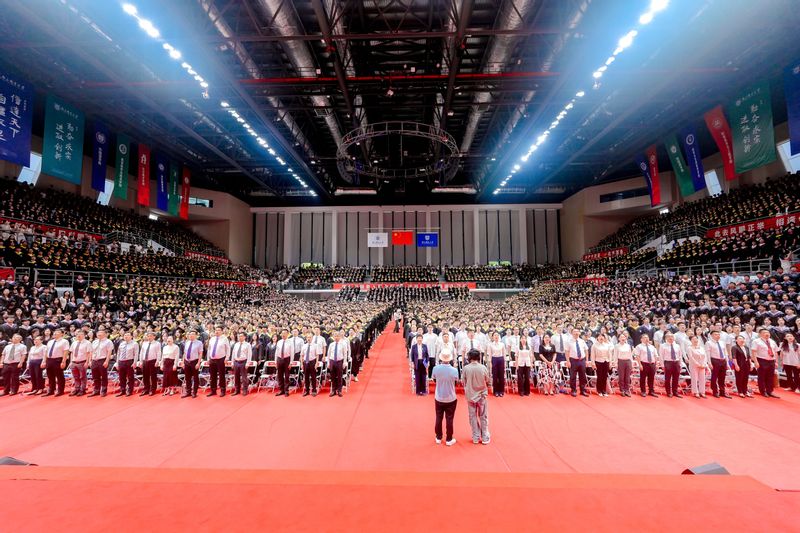 全體師生齊唱《畢業歌》和校歌《信達天下》