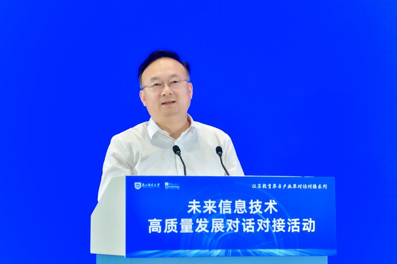 6月27日,江蘇教育界與產業界對話對接——“雙高協同·五鏈融合”未來信息技術高質量發展對話對接活動在南京新港國家高新技術產業園舉行。活動由省教育廳主辦,南京郵電大學、南京經濟技術開發區管理委員會、江蘇省有機電子與信息顯示協同創新中心、江蘇省物聯網技術與應用協同創新中心共同承辦。
