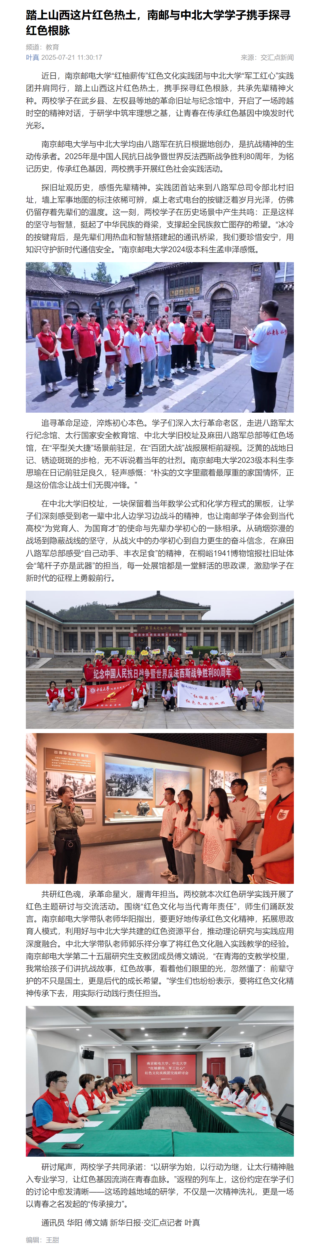 【新華日報客戶端】踏上山西這片紅色熱土,南郵與中北大學學子攜手探尋紅色根脈