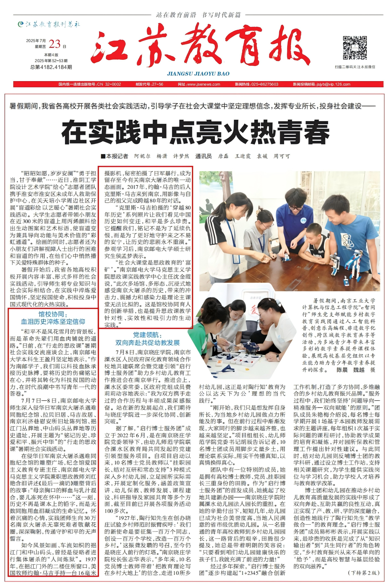 【江蘇教育報頭版】在實踐中點亮火熱青春
