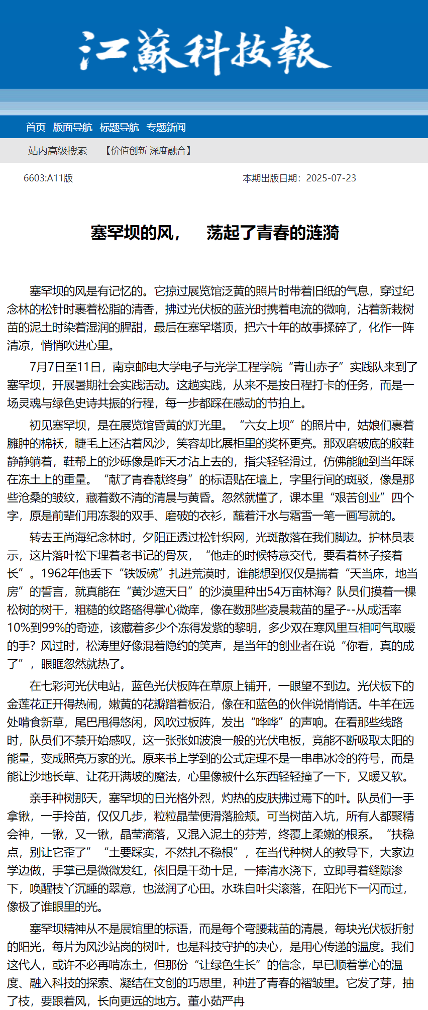發布時間:2025-07-23 瀏覽次數:15 文章來源:2025年7月23日《江蘇科技報》11版