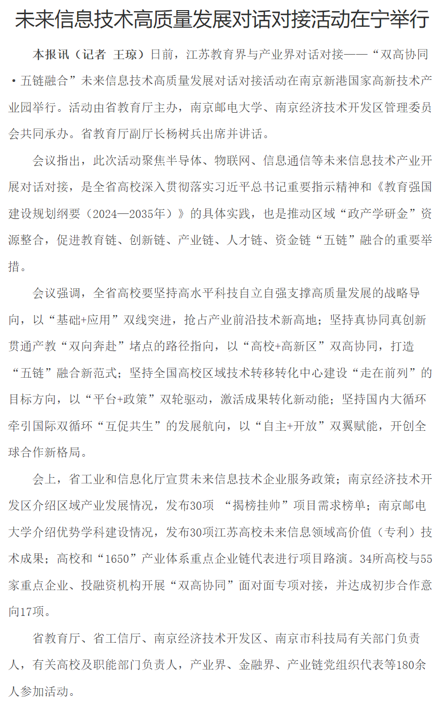 【江蘇教育報】未來信息技術高質量發展對話對接活動在寧舉行
