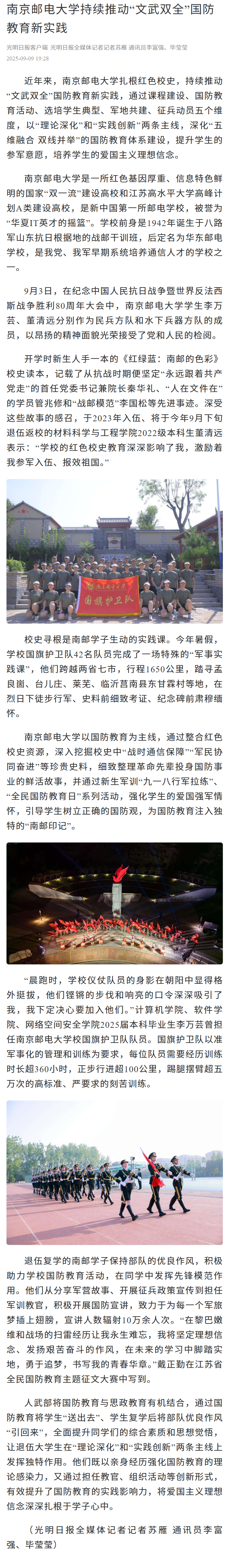 【光明日報客戶端】南京郵電大學持續推進“文武雙全”國防教育新實踐