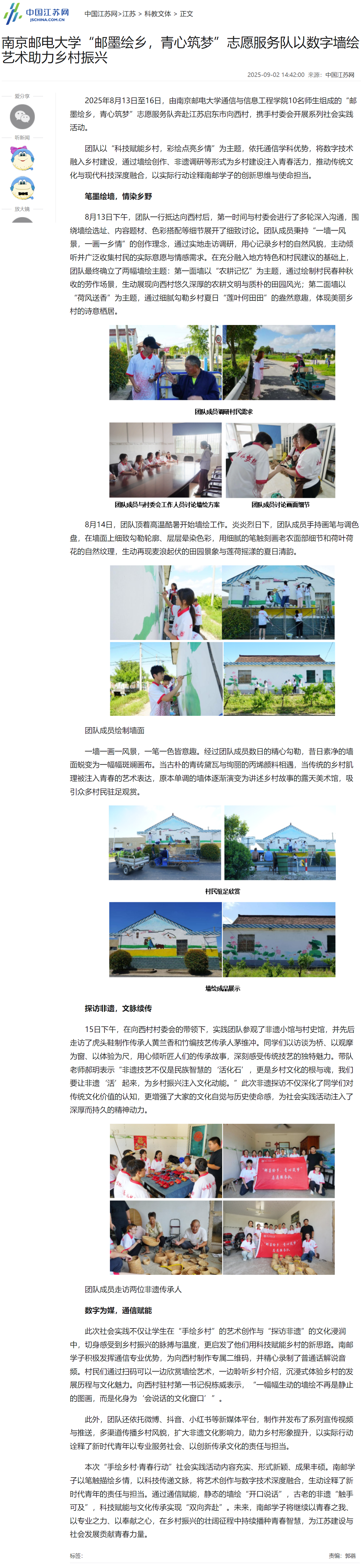 【中國江蘇網】南京郵電大學“郵墨繪鄉,青心筑夢”志愿服務隊以數字墻繪藝術助力鄉村振興