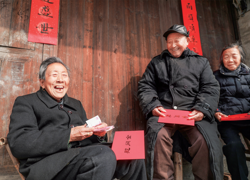 黨的十八大以來,各級民政部門不斷完善社會救助制度,加快構建分層分類、城鄉統籌的中國特色社會救助體系,讓困難群眾真切感受到黨的政策好、日子有奔頭。圖為2022年1月25日,浙江省湖州市南潯區千金鎮東驛達村困難群眾接受春節慰問時露出開心的笑容。 浙江省湖州市南潯區融媒體中心供圖 陸志鵬/攝