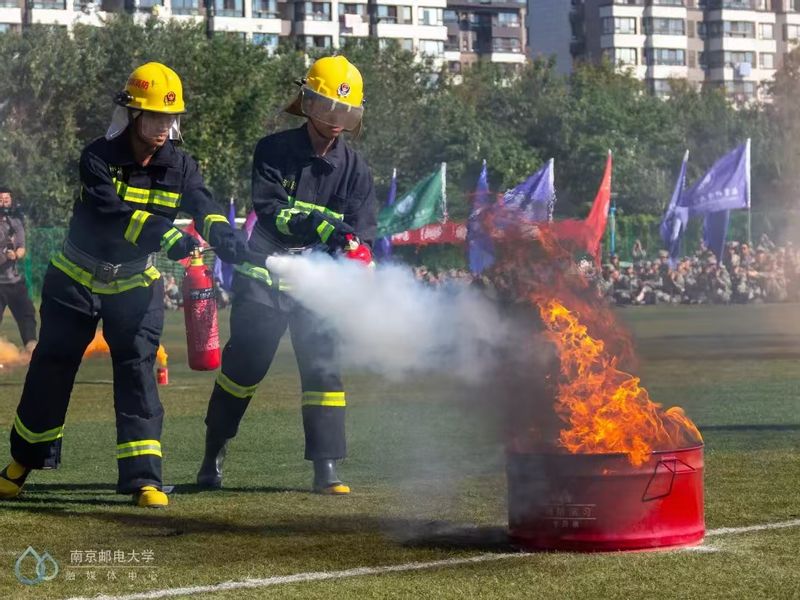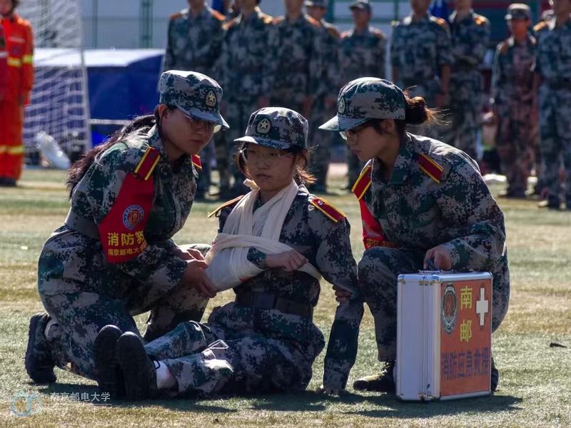 分列式方隊步履鏗鏘地依次通過主席臺,他們昂首挺胸、神采飛揚,以洪亮的口號、整齊的揮臂、堅定的腳步、昂揚的姿態展現了南郵學子熱情飽滿的精神風貌。好男兒勢不可擋,女兒郎巾幗風采,紅旗方陣整齊劃一,軍體拳表演虎虎生威,匕首操表演氣勢如虹,戰術演練、消防及應急救護訓練有素,現場掌聲雷動。
