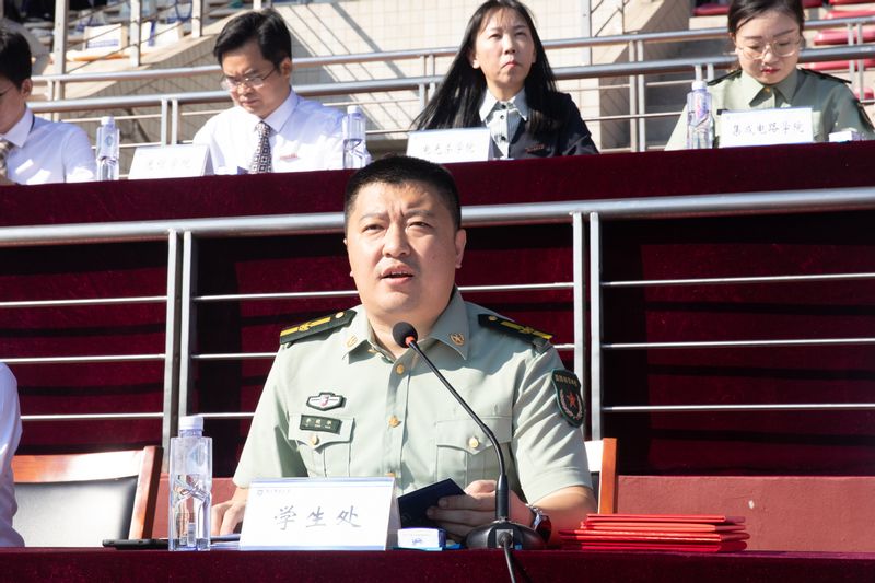 黨委學生工作部部長、學生工作處處長、人民武裝部部長李曉華主持軍訓成果匯報會