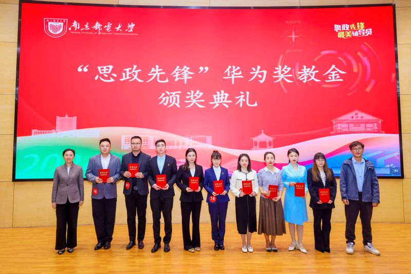 華為南京研究所招聘經理劉文旭、南京艾瑞集團董事長楊利霞、南京艾瑞集團市場部總監陳韓受邀出席“思政先鋒”華為獎教金、艾瑞獎教金頒獎典禮,共同為獲獎的18名輔導員頒獎。支持企業代表、兄弟高校代表、我校相關部門負責人和全體學工干部現場觀摩。