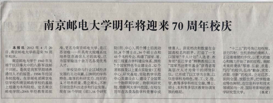 【人民郵電報】南京郵電大學(xué)明年將迎來70周年校慶